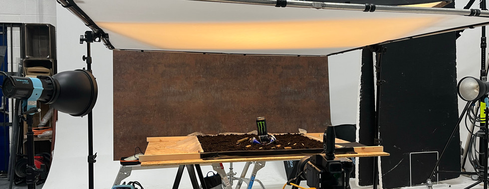 This shot was one of the most challenging and rewarding projects I’ve undertaken, featuring a rivalry between Monster and Red Bull as a battlefield scene. The cans were embedded in mud alongside authentic WW so far. I aimed to depict the rII bullets and shells, with smoke and fire effects heightening the drama. The Monster can stand victorious, crushing the Red Bull beneath it.